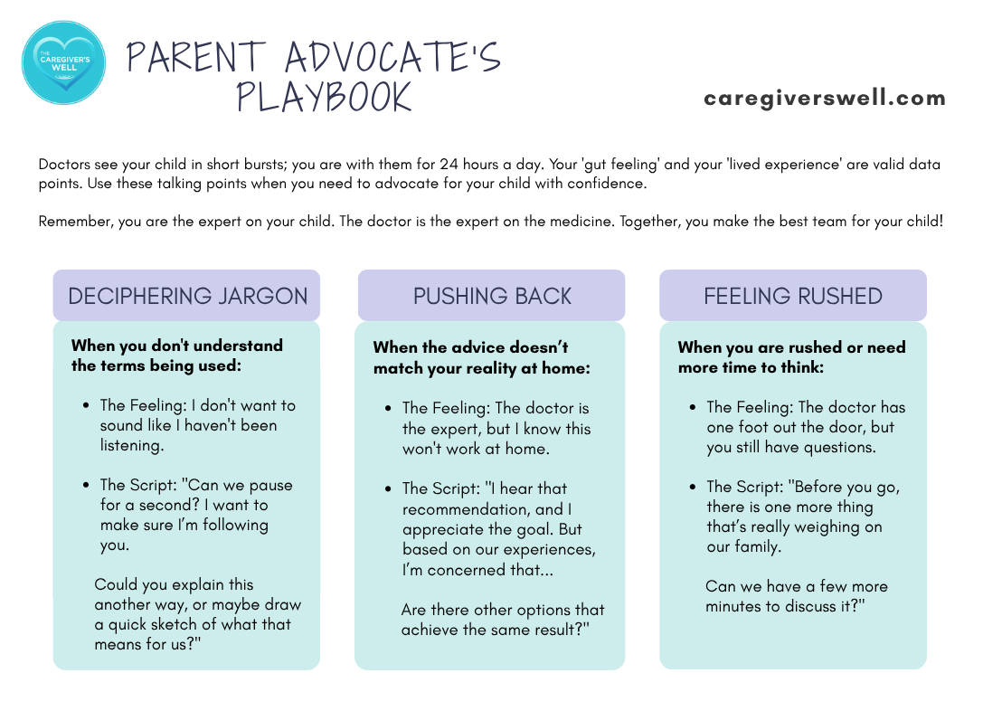 As a key member of your child’s care team, you need to be comfortable asking doctors for clarity; pushing back when advice doesn’t match your reality at home; and asking for more time when you feel rushed.